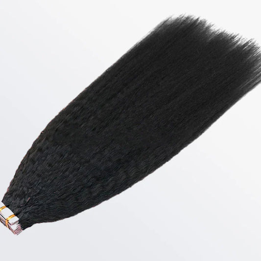 Kinky Straight Tape-In Remy Hair Extensions – Afro-Textured, #1B Natural Black