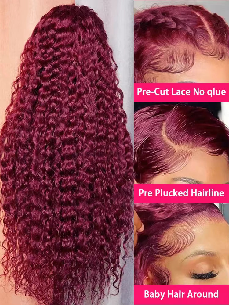 250% Density 99J Burgundy Deep Wave Lace Frontal Wig – Human Hair, 13x4 Curly