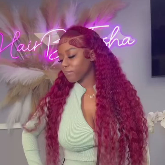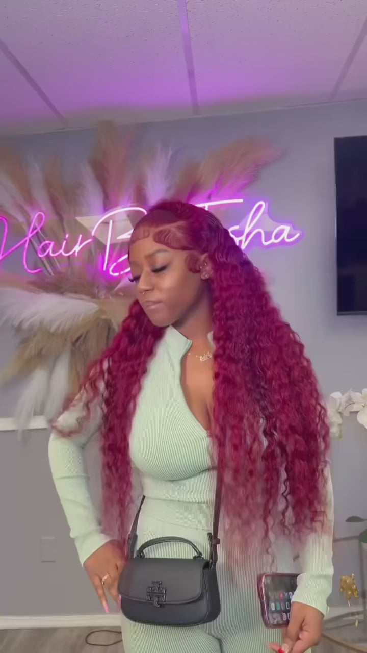 Experience luxury and versatility with this premium lace front wig crafted from 100% Brazilian Remy hair. The deep wave texture and rich 99J burgundy shade create a stunning, natural-looking style that commands attention. Featuring a 13x4 HD lace front with transparent Swiss lace, this wig delivers an undetectable hairline for seamless blending. The 250% density provides voluminous, full coverage, while the half machine-made, half hand-tied construction ensures durability and realistic movement. Designed to fit average-sized heads, this wig combines professional craftsmanship with high-quality materials for a transformative look that lasts.